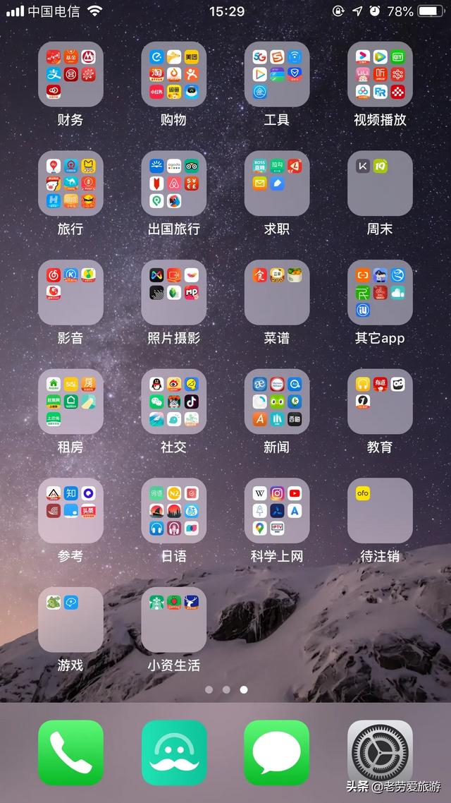 现在都是智能手机,里面的手机软件各种各样的都有。就拿本人的来说,大概分如下几类。