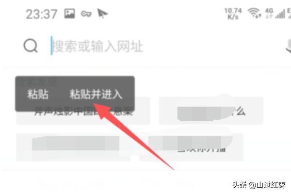 3、打开UC浏览器顶部搜索框,长按并点击【粘贴并转到】。