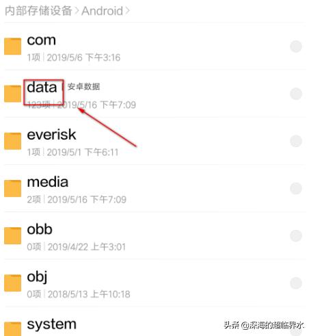 5、在Android文件夹中选择data文件夹,如图所示,在data文件夹中选择app.wushuanghg.mod文件夹,然后点击file文件夹。