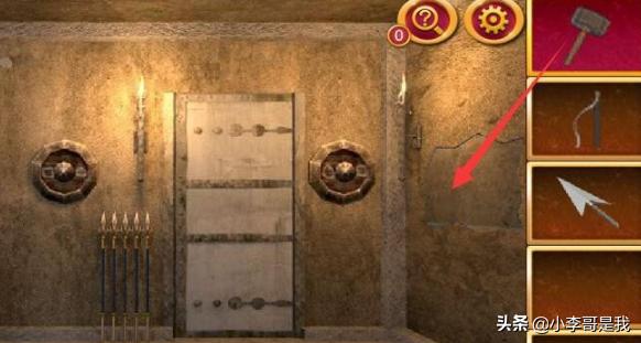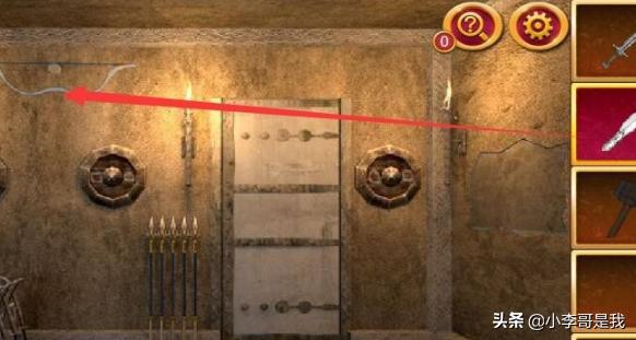 9、根据提示,用弓箭射击右侧墙面的对应位置,即可过关。