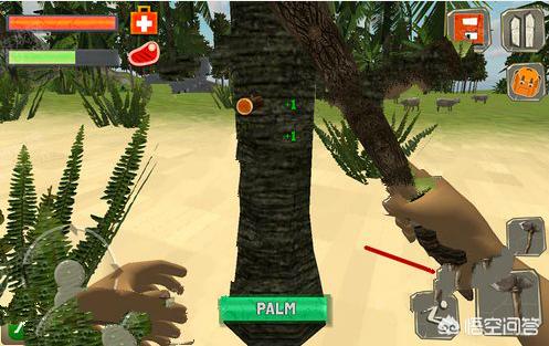 第三步:然后找一棵树用石斧砍伐,收集木料(木料是常用材料,大家可以多收集一些,以备不时之需)。