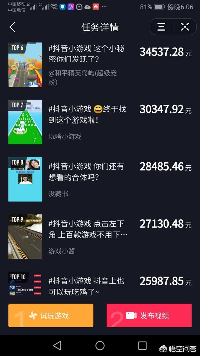 一个游戏视频起来了有几十万收入!是不是很夸张!不要惊讶!自己去抖音游戏里找你就可以看到了!