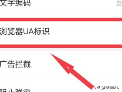 3、在“网页浏览设置”中看到有“浏览器UA标识”的一个项目栏,点击进去,我们选择“电脑版”,这样手机浏览器就会以电脑版的模式接入互联网,并以电脑网页界面呈现。