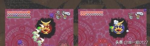 6,第三阶段(魔神古夫大变身/Vaati's Wrath/魔神グフー大変身):●紫色电球,闪!用乾坤杖对付那个四处游走的爪子,跟着马上缩小进入,清除小怪(大回旋斩)。出来后变大,一样的套路对付另一只手,虽然缩小进入后会黑漆漆,拿油灯出来,一样大回旋斩砍它天昏地暗。两只爪子结束!