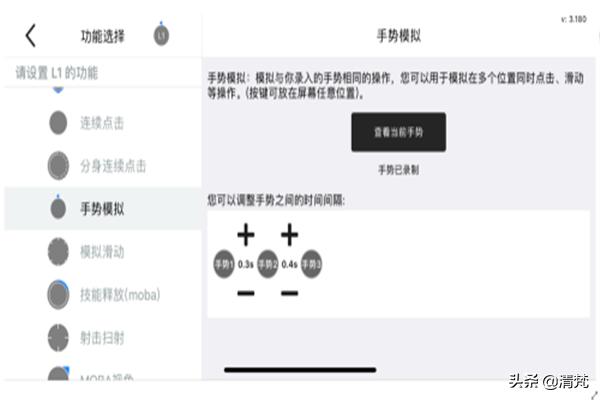 在设置页面找到手势模拟,点击开始录制