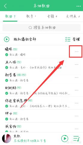 1)打开QQ音乐,进入首页后点击一个【歌曲列表】,进入到详情列表后,挑选一首自己喜欢的歌曲,点击右侧的【...】按钮。(如下图)
