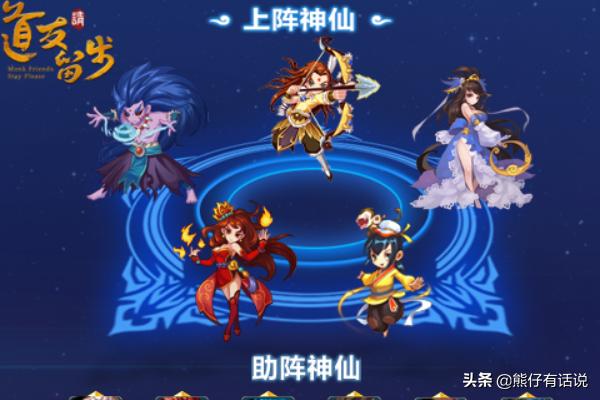 此时的阵容是镇远大仙(突破11重左右,3星5阶)、主角唐僧变身(突破10,3星0阶)、姜子牙(突破5或6重,2星)、唐僧(0重0星)、二郎神(0重0星)、玉帝(0星0重)。双主力负责输出,双唐僧+镇远+二郎神负责提供怒气。