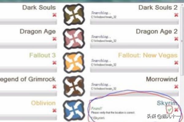 1.首先我们装MOD之前一定需要下载的一个软件Nexus mod manager。后面简称NMM。下载完之后会进入一个安装界面。安装时会为你自动匹配游戏,只需要搜索到Skyrim就可以,其他全部可以点叉关掉。