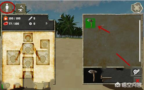 第二步:在人物界面找到石斧,然后点击右下角的装备按钮使用石斧