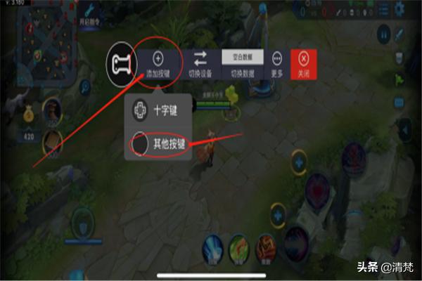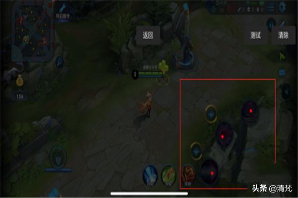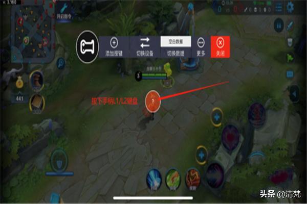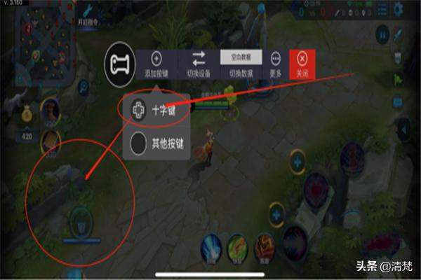 修改完毕继续返回主页面,添加一个十字键拖动到如图所示的位置就可以了(重要,没有十字键摇杆不能控制行走)还可以继续添加L2键,L2可以是另外一套连招也可以点按屏幕的任何位置,打开商店购买装备查看战绩之类的,就大家发挥想象啦。