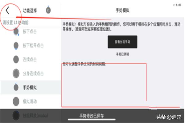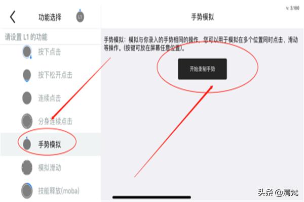 在设置页面找到手势模拟,点击开始录制